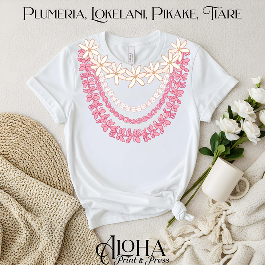 Pikake Mokihana Plumeria Lei Shirt – Hawaiian Floral Lei Necklace Tee