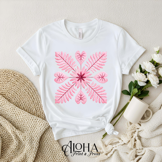 Blush Botanical Quilt Shirt – Hawaiian Floral Mandala Tee