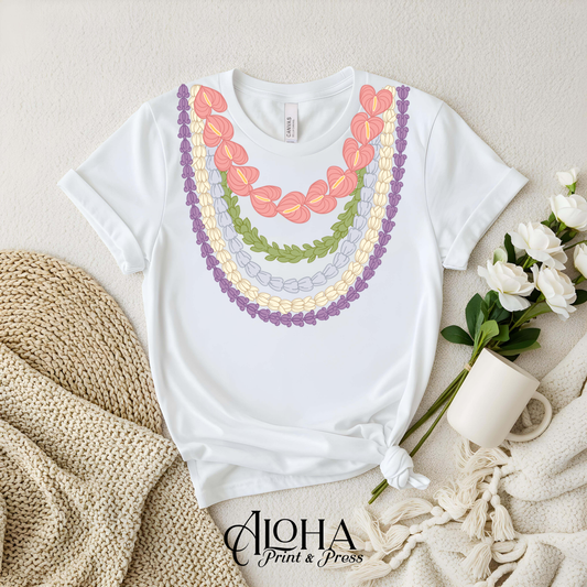Hawaiian Lei Necklace Shirt – Pakalana, Mokihana & Crownflower Graduation Tee | Lei Day Hawaii Shirt